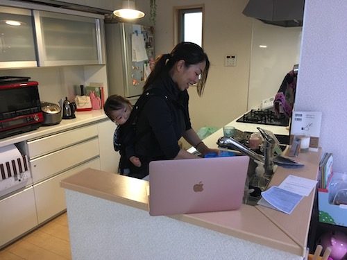 上の重堂さんみたいに、家事しながら、赤ちゃんおんぶしつつ、やれる笑